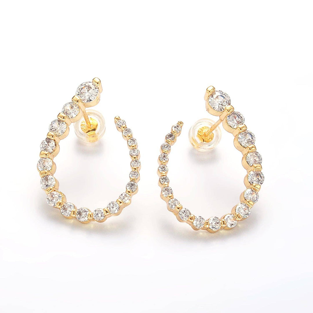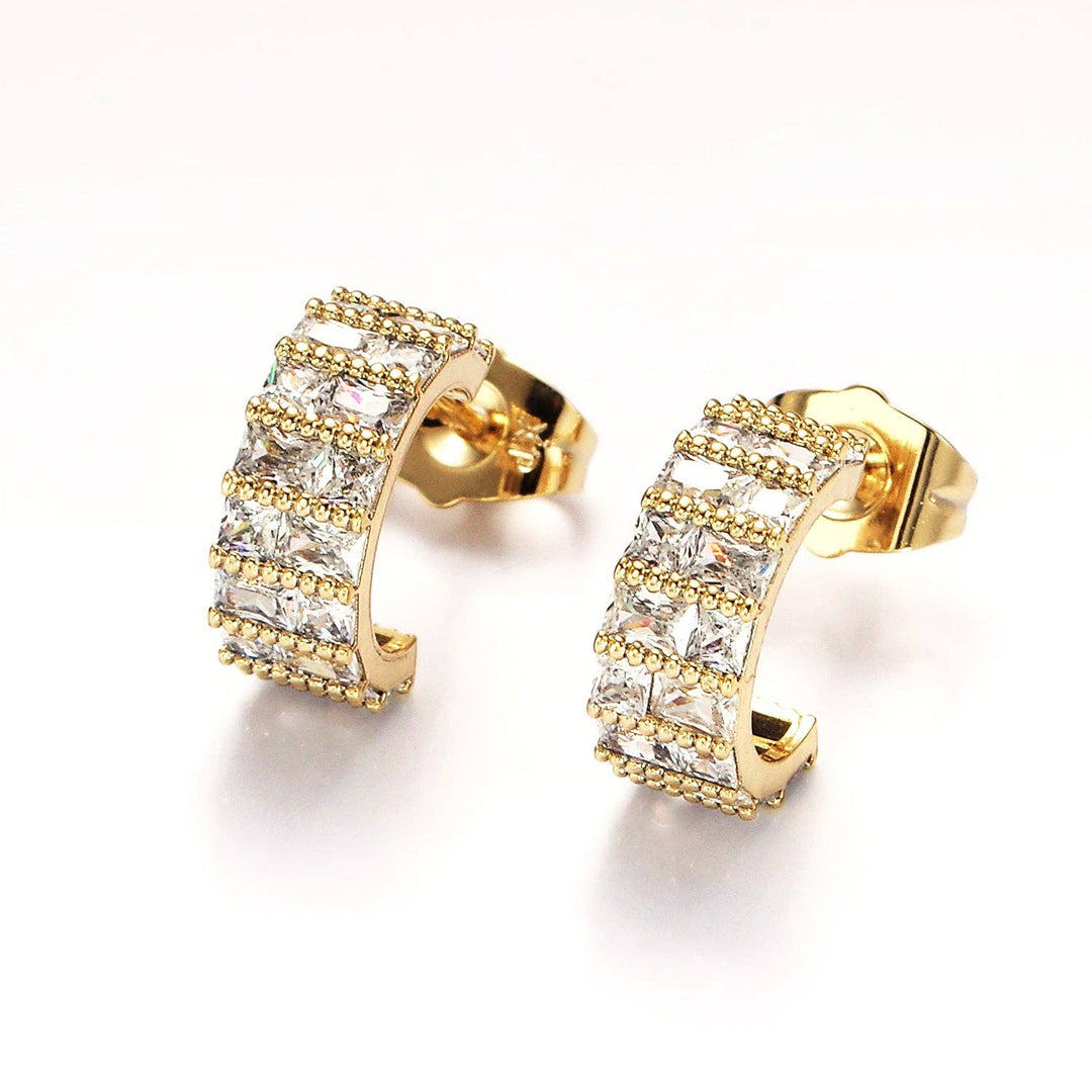 Gold CZ Circular U-Shaped Horseshoe Earrings Set