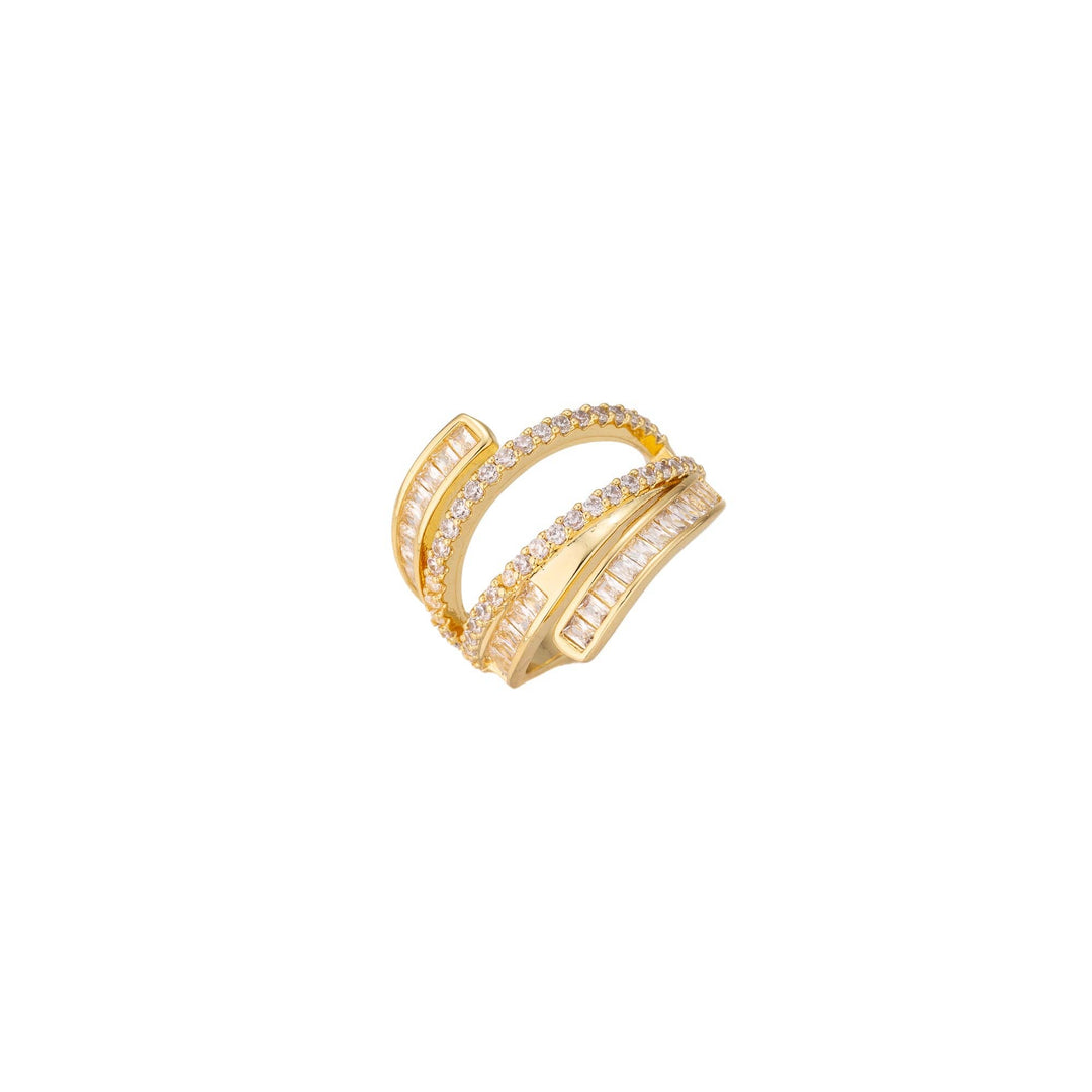Gold Clear Square CZ Lined C-Shaped Cartilage Hoop Earrings
