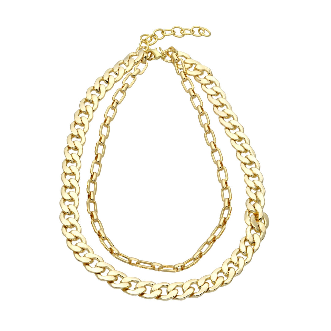 Mix Beaded Chain with Chunky Gold Chain Necklace