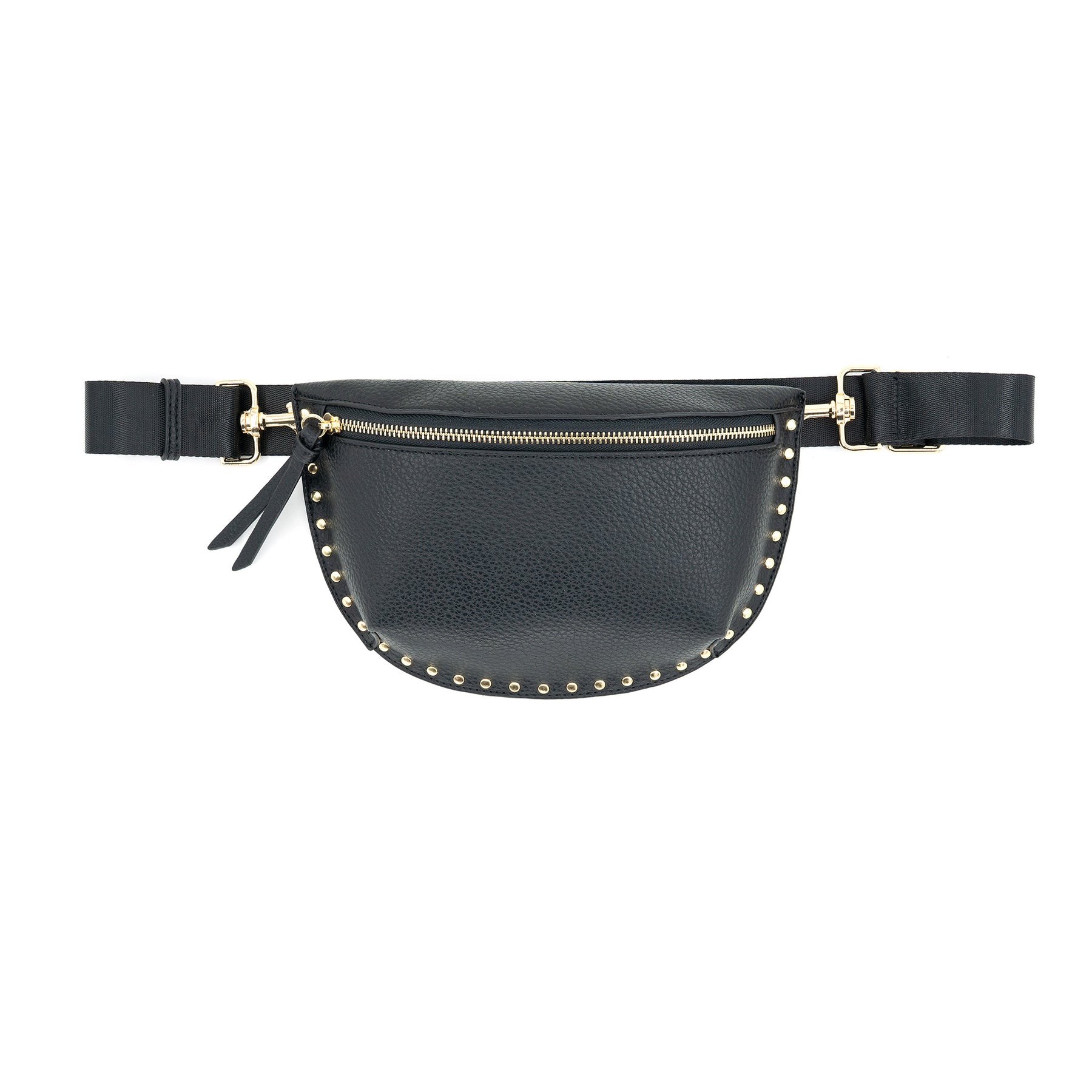 Make a bold statement with the Stud Fanny Pack, featuring leather and striking gold accents. Designed for style and functionality, this versatile accessory keeps your essentials close while adding a touch of luxury to your look. Perfect for busy days or nights out, it’s the perfect blend of convenience and chic.