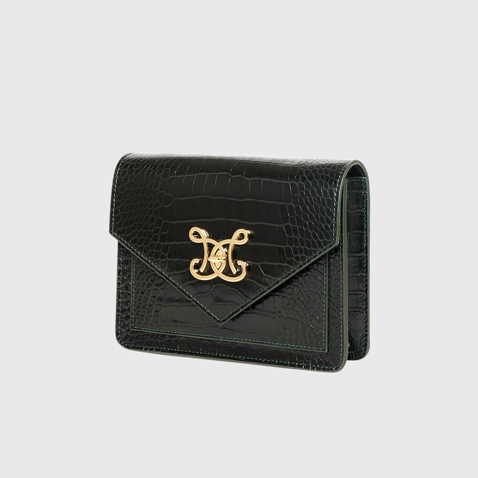 Crafted from premium croc-embossed leather with placed scale detailing, it combines timeless elegance with meticulous artisanal craftsmanship.