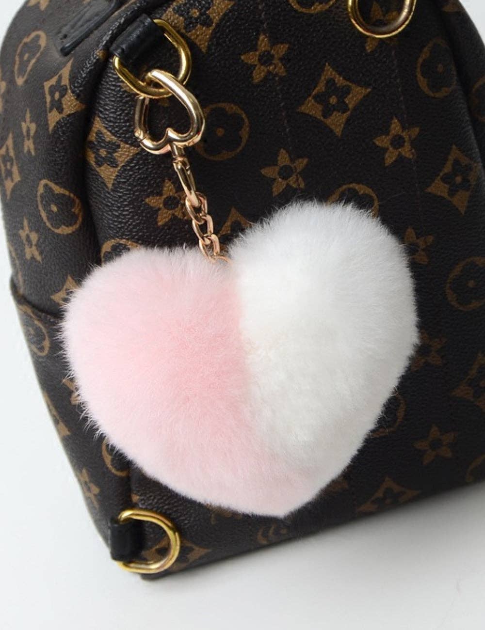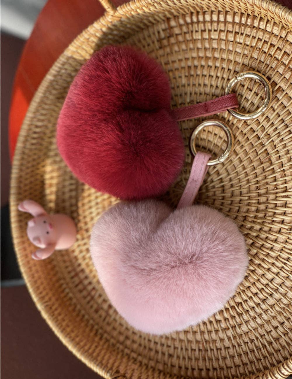 Heart Shaped Faux Mink 2-Tone Key Chain
