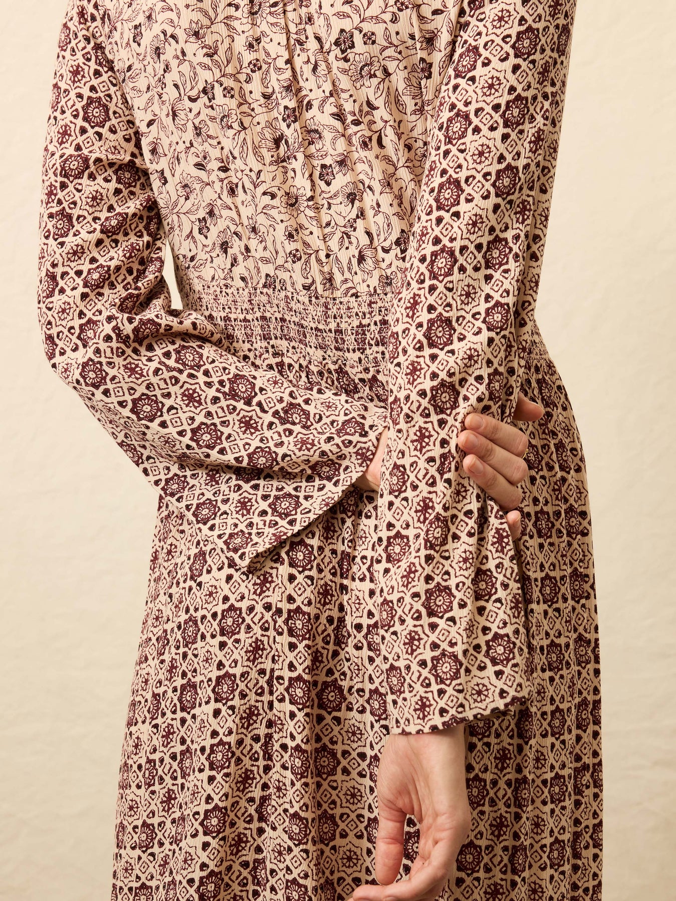 Perfect for sunlit afternoons and dreamy evenings, this maxi dress features a beautifully tiered skirt that adds movement and grace with every step. The elegant bell sleeves provide a touch of bohemian flair, creating a romantic silhouette that effortlessly transitions from day to night. From the office to a sunset dinner, this dress is your go-to for making a statement while still feeling utterly at ease.
