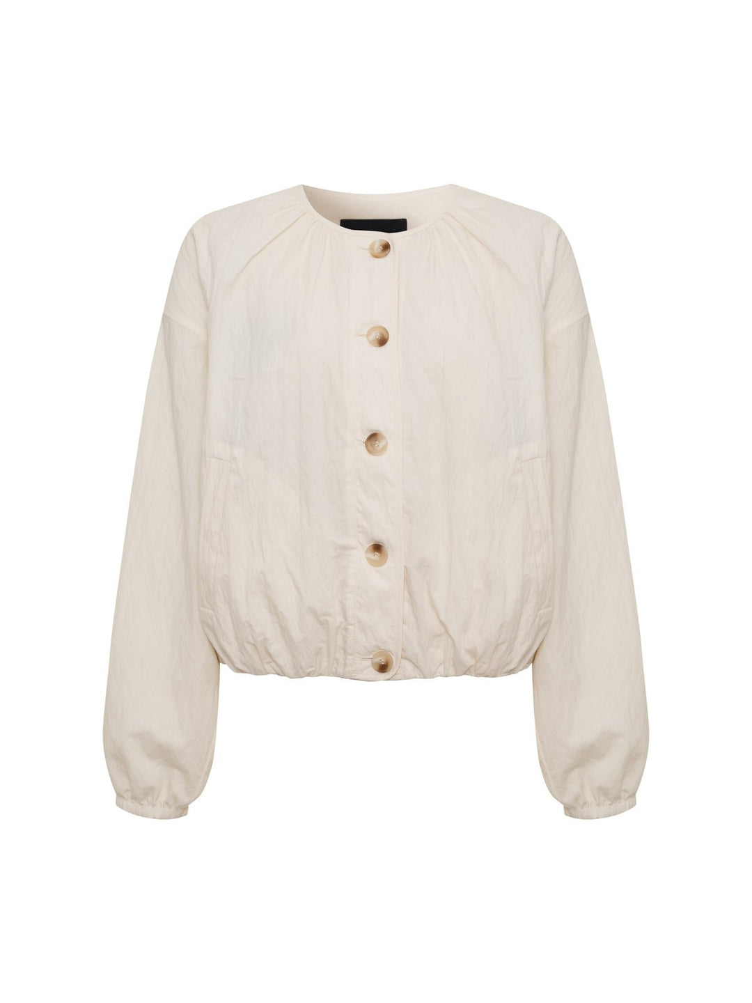 MOCK NECK BUBBLE SHOULDER SLEEVE KNIT TOP