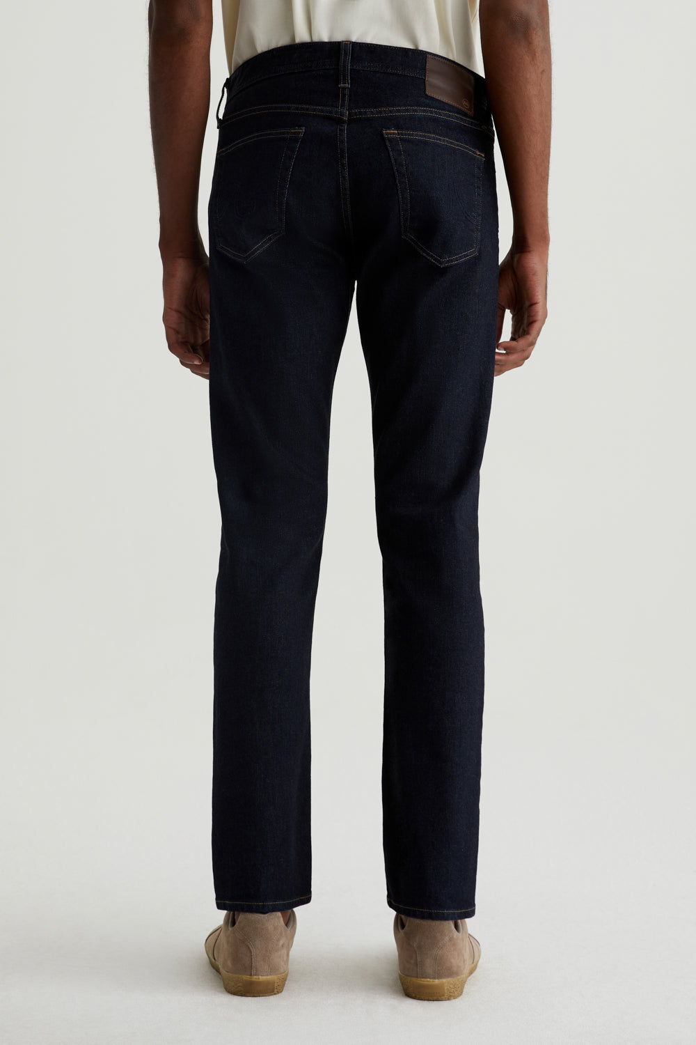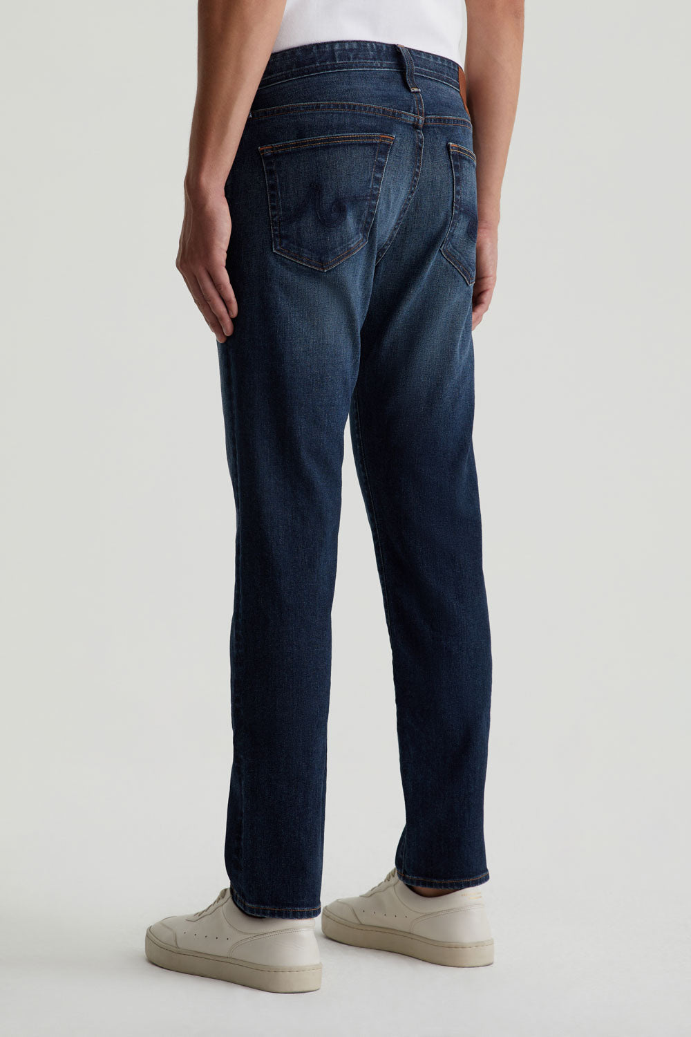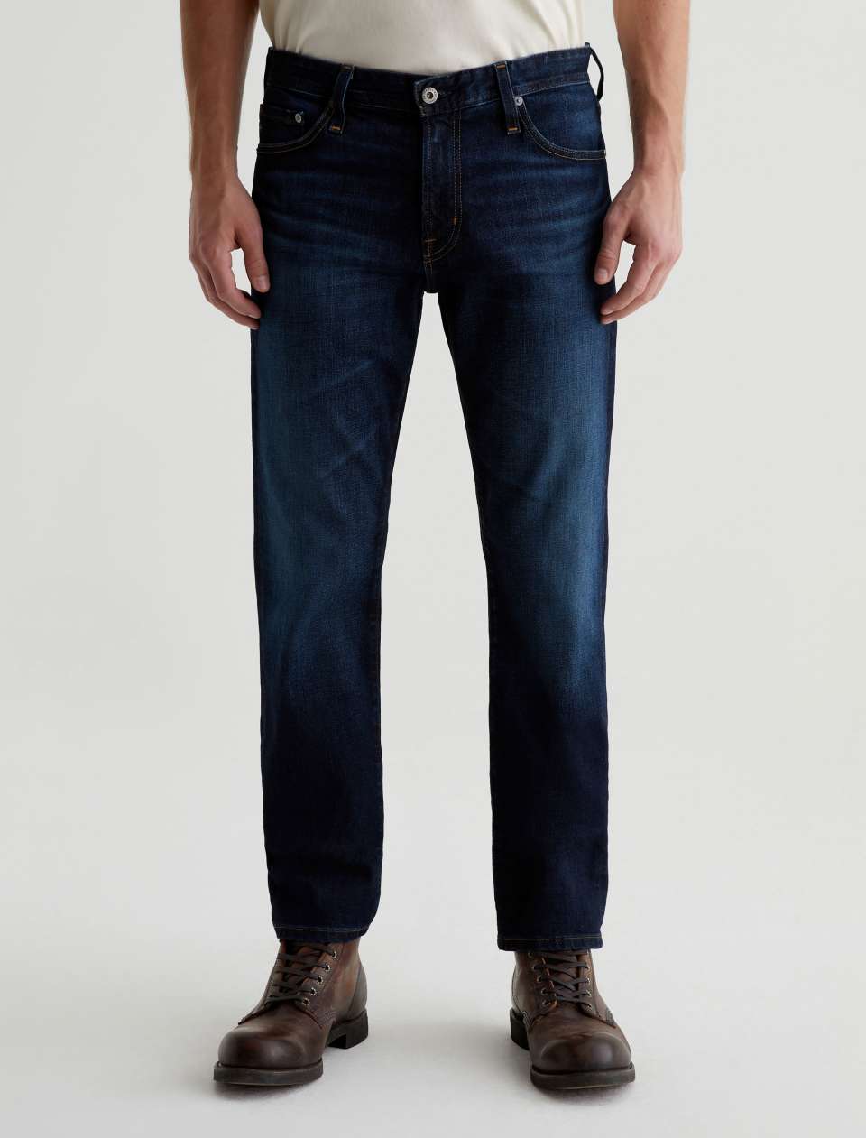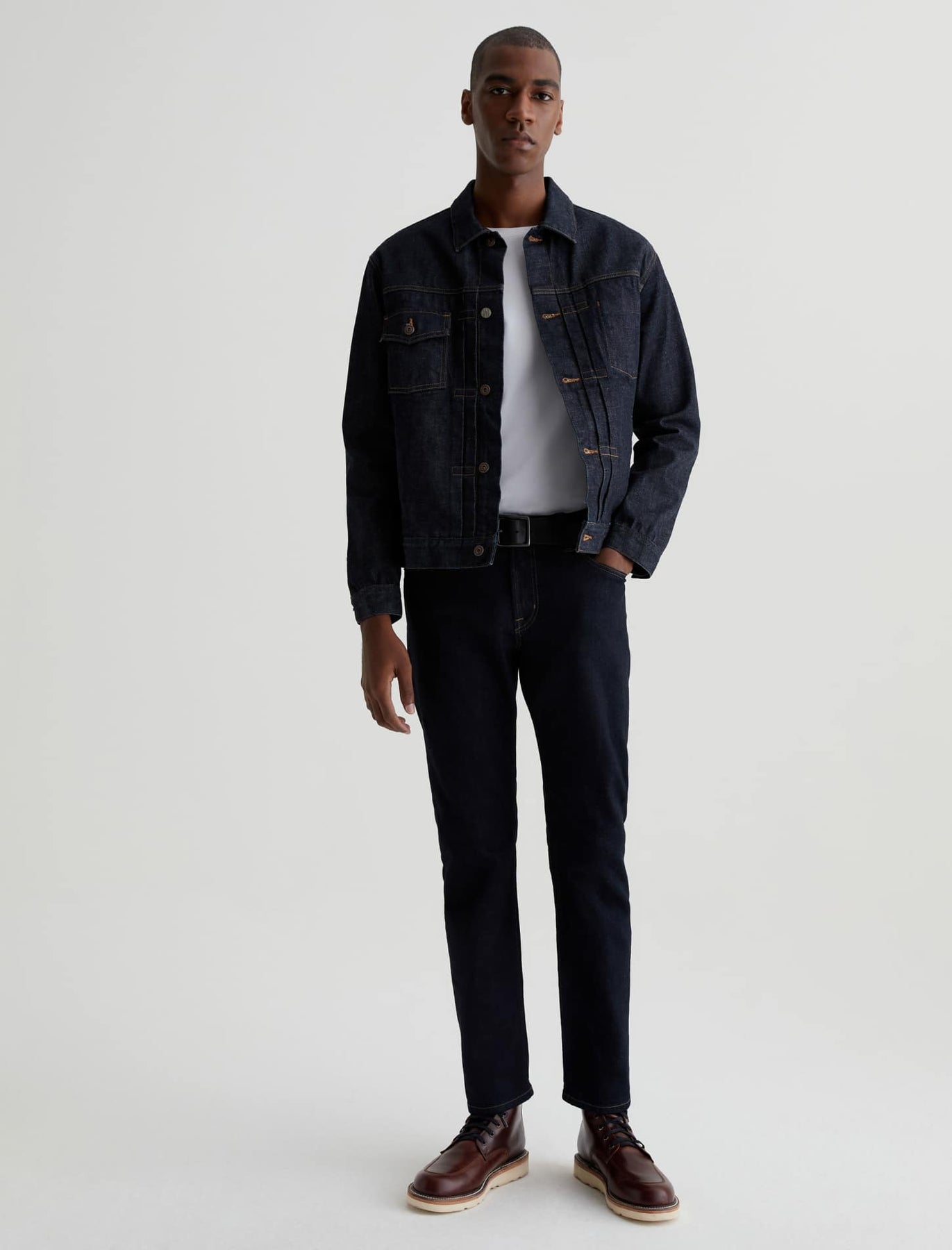 Everett is a slim straight jean for men, featured here in a dark blue wash with fading and whiskering. The style has a comfortable mid-rise waist and a straight fit that’s relaxed from hip to the knee before slightly tapering at the leg opening. These men's slim straight jeans are designed in 11.2 oz. Union Dark Denim with comfort stretch. Contrast stitching finishes the five-pocket construction