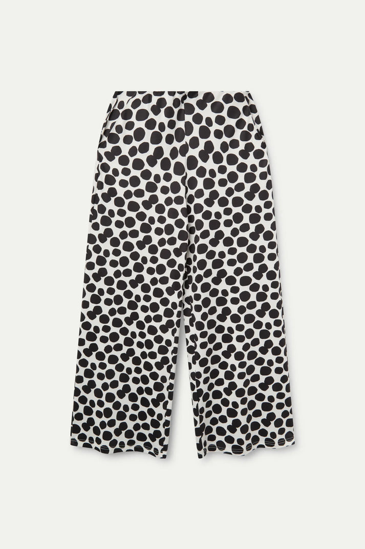 Elevate your wardrobe with these long trousers featuring a stylish geometric terrazzo print. Designed with a comfortable mid-rise elastic waistband and a flattering straight leg, they offer both ease and elegance. Practical side pockets add functionality, making these pants perfect for day-to-night wear. Embrace a unique pattern that stands out while enjoying all-day comfort.